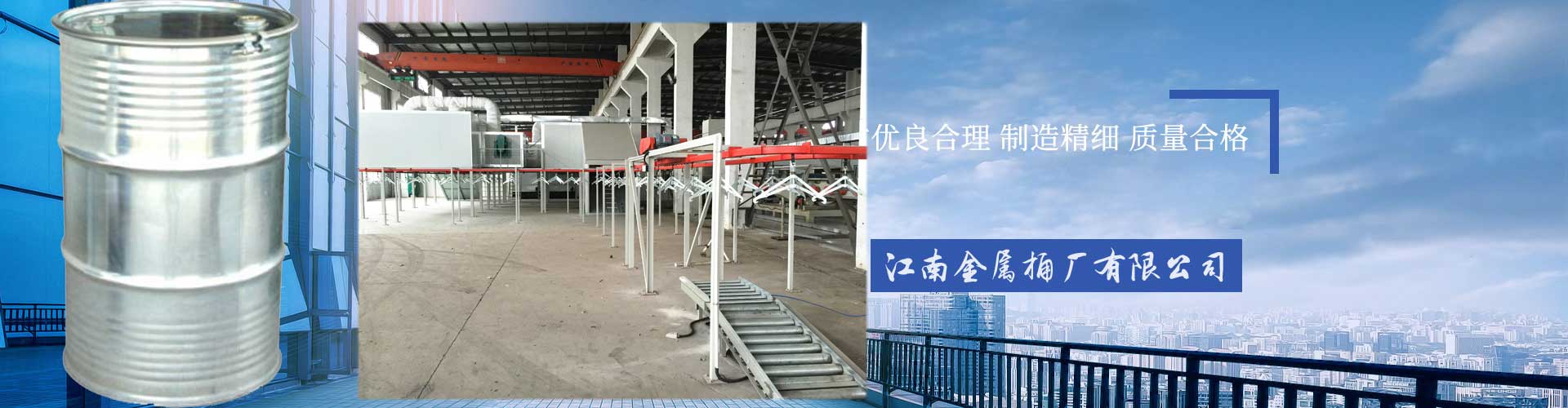 江陰市江南金屬桶廠有限公司成立于1992年,已有20多年生產歷史。從原有的小廠發展到目前年產量達20萬以上翻新包裝桶,從原有單一的200立升鐵桶翻新發展到目前25立升、50立升、100立升、125立升、 160立升、 200立升、1000立升鐵桿鍍鋅桶、塑料桶、開口桶、內涂塑桶等的翻新,并在外觀油漆上,根據不同用戶要求,采用噴漆、烤漆、瓷漆等高檔油漆、套色、絲網印刷字樣。